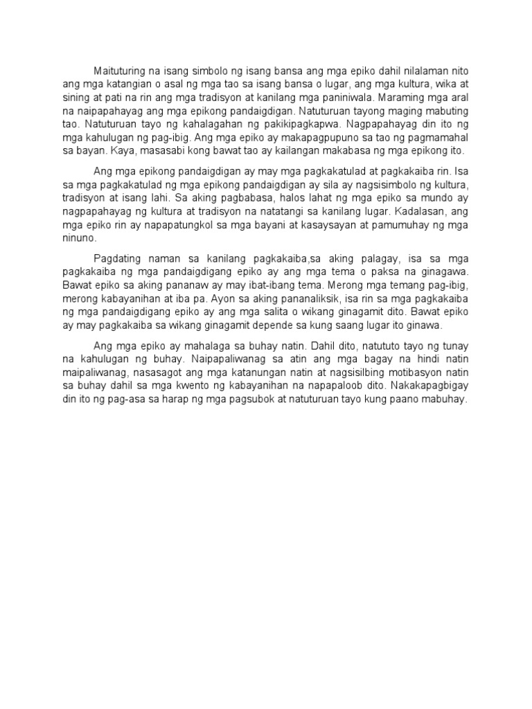 Sumulat Ng Talata Tungkol Sa Epiko Repleksiyon Ng Kabayanihan Patulong Brainly Ph