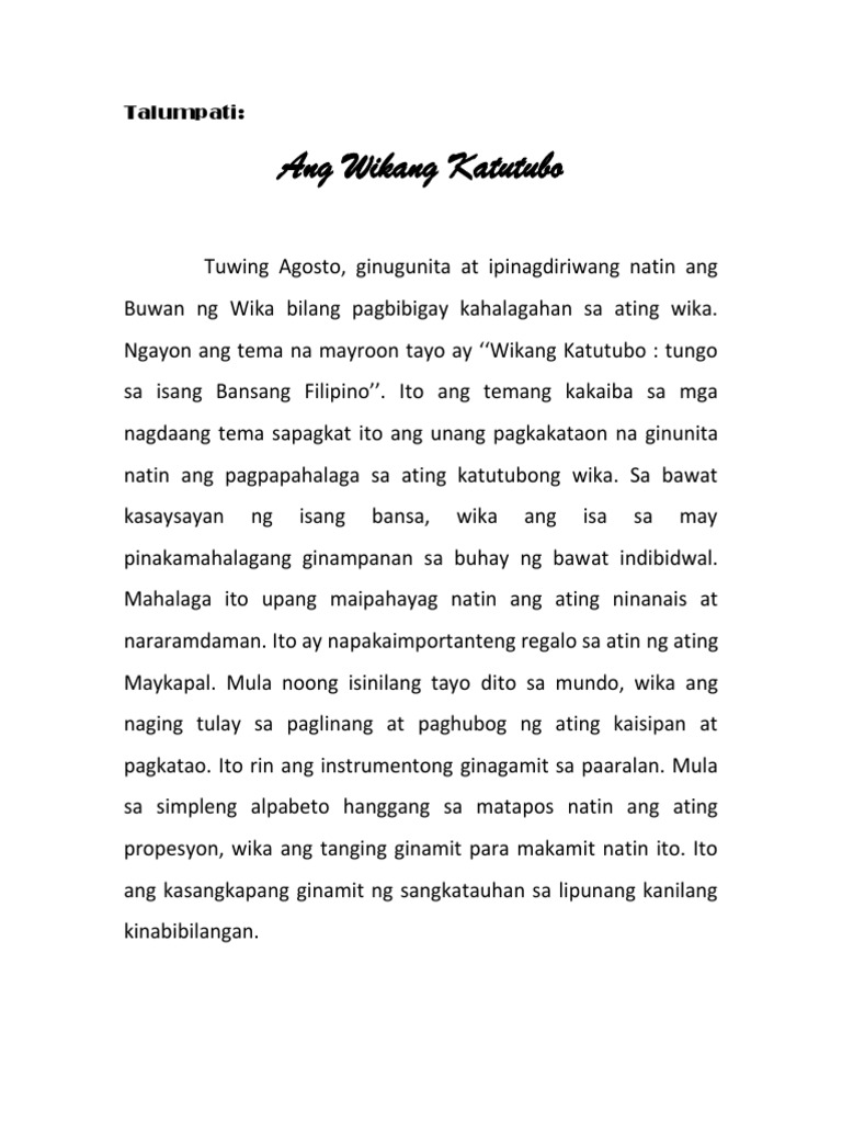 Talata tungkol sa wikang katutubo tungo sa isang bansang filipino. Ang temang Wikang Katutubo. WIKANG KATUTUBO TUNGO SA ISANG BANSANG FILIPINOpdf - Google Drive. Artikulo tungkol sa wikang filipino 2019.