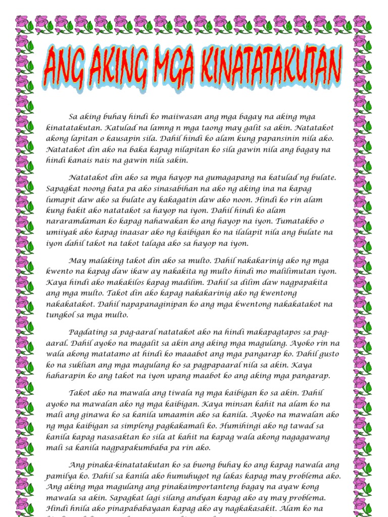 Simple at mga mumunting mga pangarap na para sa aking ama at ina ay nagdudulot. Ang sanaysay na pinamagatang Laban Para Sa Buhay ay isang halimbawa ng mga maikling sanaysay tungkol sa sarili. Ang liham na ito ay para sayo at ang nilalaman ng isip ko na gusto kong sabihin.